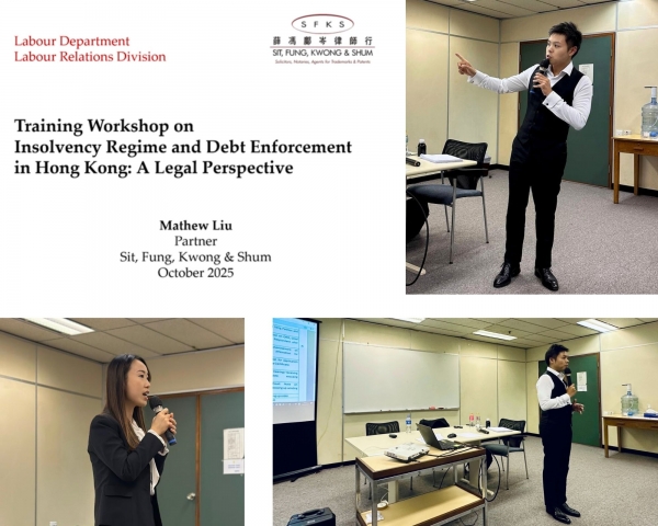 Our Partner Mathew Liu gave a training workshop for the Labour Relations Division of the Labour Department, on the topic of “Insolvency Regime and Debt Enforcement in Hong Kong: A Legal Perspective”.