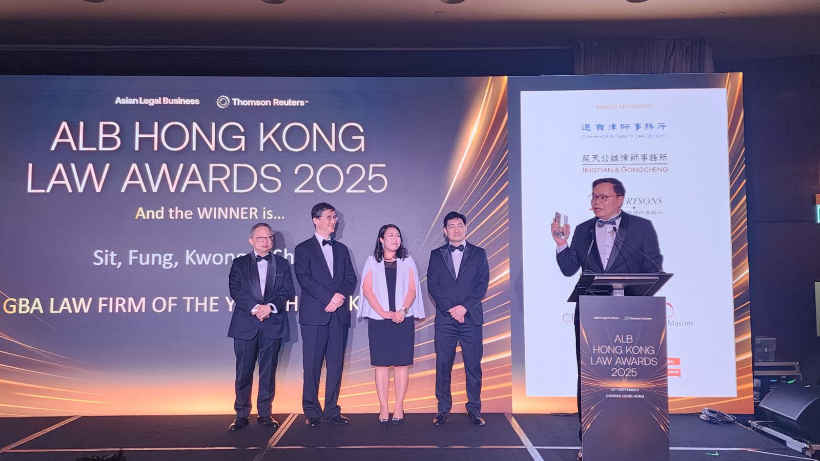 Thank you Asian Legal Business and Thomson Reuters for organising this annual flagship event. Thank you panel judges for your dedication in the selection process. Congratulations to all winners and finalists, our dearest peers in the Hong Kong legal profession. Last but not least, we heartily thank our colleagues in SFKS who contributed to this remarkable success in the firm’s history!