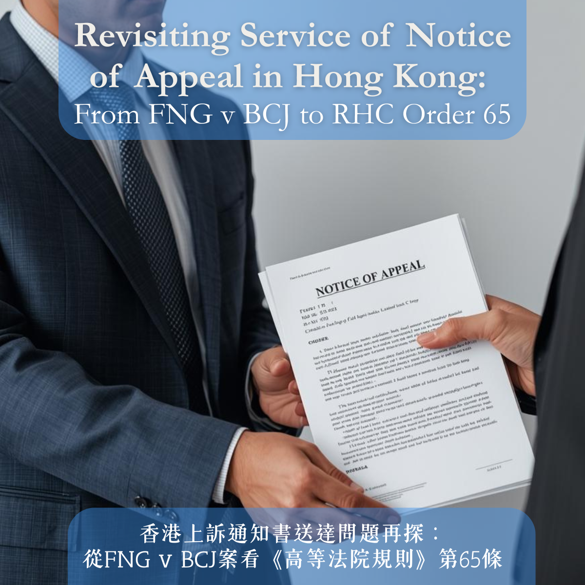 Revisiting Service of Notice of Appeal in Hong Kong: From FNG v BCJ to RHC Order 65